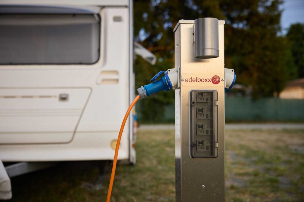 Extra viel Raum, mit Strom, Frisch- und Abwasser direkt an der Parzelle – ideal für alle, die es gerne besonders bequem haben.