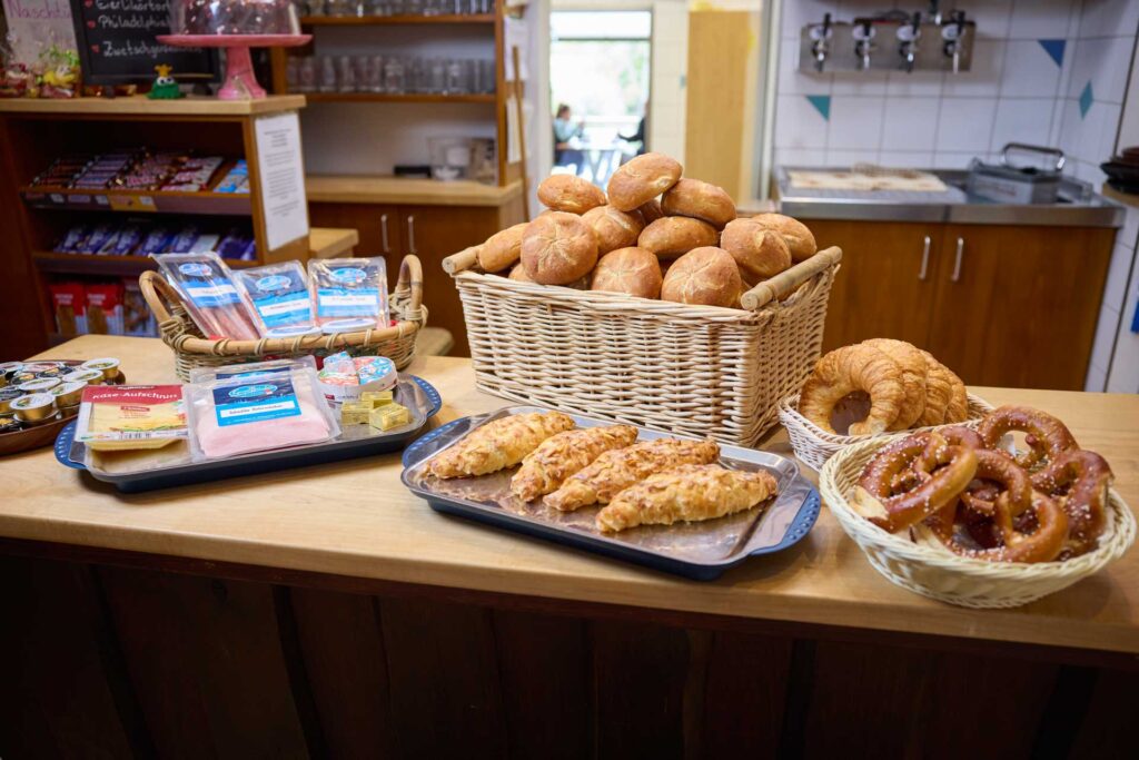 Unsere Bäckereien des Vertrauens liefern täglich frische Brötchen direkt zu uns an den Campingplatz. Bestellen Sie ihre Lieblingssorten einfach bis 18 Uhr am Vortag an der Rezeption und am nächsten Morgen können Sie sie zwischen 8und 11Uhr bequem abholen. Freuen Sie sich auf Kaiserbrötchen und Bamberger Hörnchen von der Bäckerei Fuchs sowie Vollkornbrötchen und Brezeln von der Bäckerei Stuber.